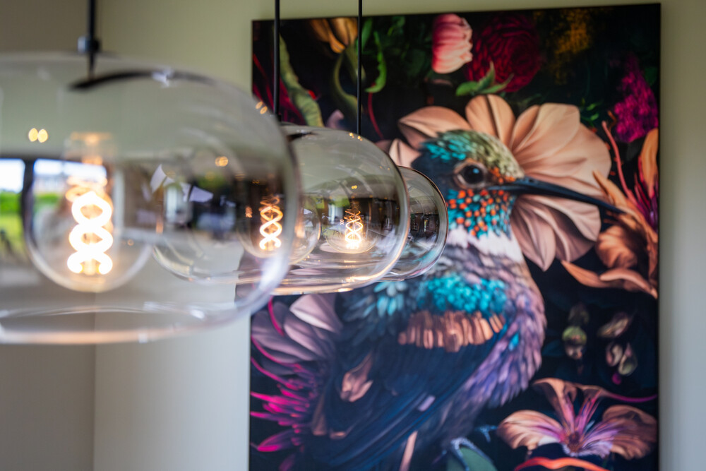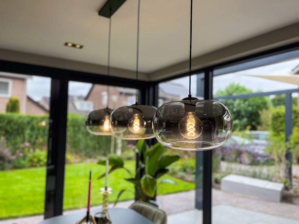 Het lichtplan versterkt dit ontwerp: overdag brengt de grote glazen pui de tuin naar binnen, ’s avonds creëren zorgvuldig geplaatste armaturen sfeer en comfort.